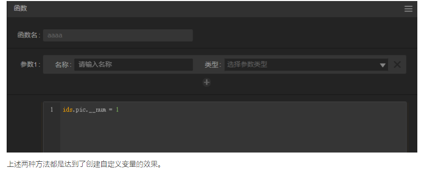 例如:在自定义函数内创建变量ids.pic.__num=1