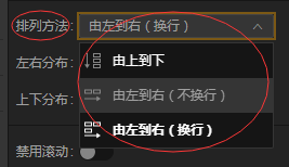 排列方法是影响对象在相对定位容器中的排列方向,比较常应用的是由上到下、由左到右(不换行)以及由左到右(换行)。